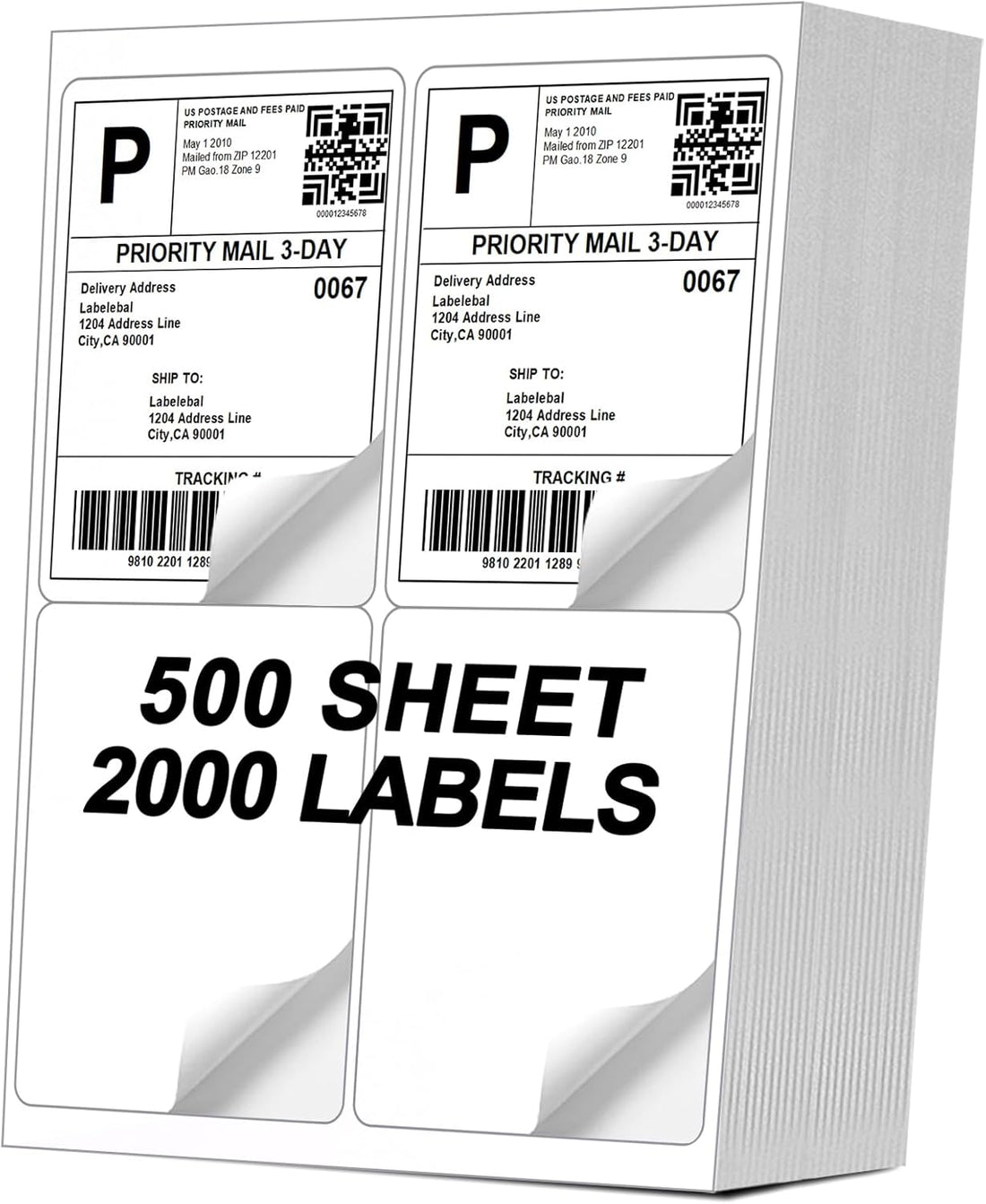 500 Sheets 2000 Labels 4-UP 4''x5'' Shipping Labels for Laser & Inkjet Printers, Shipping Mailing Labels, 4 Pcs Per Page Shipping Labels